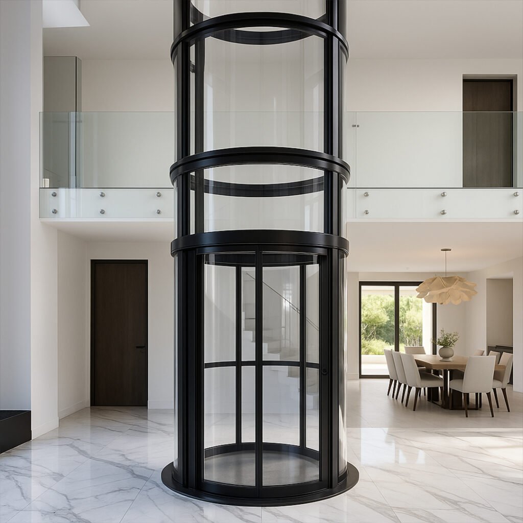 The FLIT Icon Series 2 is engineered for larger spaces and elevated lifestyles, offering generous cabin space, modern design, and dependable performance. Its full polycarbonate cylindrical structure with a powder-coated finish makes it a striking architectural feature. Powered by hydraulic technology, it delivers quiet, smooth, and secure movement, making it the ideal choice for villas, bungalows, penthouses, and luxury homes that prioritize both design presence and riding comfort.